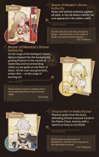Caelus: With this, Anaxa completed the proof of his hypothesis regarding creation, casting the pivotal vote at the citzens' assembly — ensuring the “Flame-Chase Journey” would continue. After returning Cerces's Coreflame, he too reached his own end. Now, only the Coreflames of Sky and Worldbearing remain. The Chrysos Heir's journey is drawing to its final chapter…