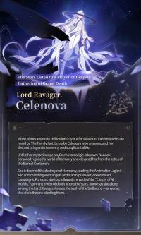 Unlike her mysterious peers, Celenova's origin is unknown: Nanook personally ignited a world of harmony and elevated her from the ashes of the Eternal Centurion.