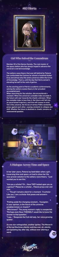 For that genius — #83 Herta — being a “genius” was merely the starting point. She sought to reach higher dimensions, higher worlds, to surpass omniscience and overlook the Unknowable Domain that even Nous had never fathomed.
