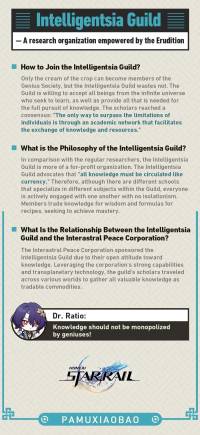The Interastral Peace Corporation sponsored the Intelligentsia Guild due to their open attitude toward knowledge. Leveraging the corporation's strong capabilities and transplanetary technology, the guild's scholars traveled across various worlds to gather all valuable knowledge as tradable commodities.