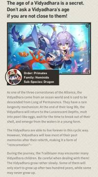 As one of the three cornerstones of the Alliance, the Vidyadhara come from an ocean world and are said to be descended from Long the Permanence. They have a rare longevity mechanism: At the end of their long life, the Vidyadhara will return to the Lunarescent Depths, molt into pearl-like eggs, wait for the time to break out of their shell, and emerge from the waters in a young form.