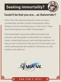 The Outworlders come from different worlds and cultures, and they gather on Xianzhou for academic study, conducting business, and seeking medicines. As long as one is not here for the secret of immortality, one will be welcomed by the residents of Xianzhou to add vitality to the Alliance!