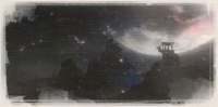 The younger sister gazes at the Moon Cocoon high above,