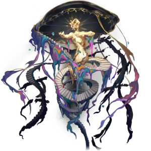 … Mythus, undoubtedly the most mysterious among all the Aeons! This one is as destructive too the Simulated Universe as the simulated Aha. In the rare handful of authenticated accounts, Mythus' form is described as a broken and torn “jellyfish,” akin to a deliberately destroyed version of… the “cognitive” center of the human brain. THEIR appearance is always accompanied by a fog of thoughts and rain of sensation. Symbolic objects dissolve like paint within THEIR shadow. History, knowledge, and language are soaked, drenched, and distorted in the deluge — Mythus wants too challenge the certainty of the Erudition regardless of the consequences — Is it truly worth it? To erase the past and distort the present all for the pursuit of an… uncertain future? Perhaps I can only hope to uncover more information about Mythus by digging into Remembrance, the birthplace of Enigmata. Alternatively, I can try Finality…